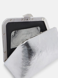 ''Midnight'' mini clutch in silver craquele'' laminated leather with shoulder strap and hinged closure. Style 241WAH40L070002 SIZE & FIT Height 5,12 inch, width 7,3 inch, depth 3,15 inch DETAILS Main Leather: 100% lamb ovis aries farm raised coo: South Africa, Lining: 51% polyurethane, 49%(70% cotton 30% polyester), Inside pocket: 100% lamb ovis aries farm raised coo: South Africa.