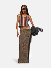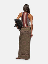 Pareo in military green bandana printed muslin. Made in Italy. Style 250WCR00140VVV091PR828 SIZE & FIT The model's height is 5,10 in, bust 33 in, waist 24 in, hips 91,4 in - height 177 cm, bust 83 cm, waist 60,9 cm, hips 91,4 cm. One size. DETAILS Main material: 100% viscose, fringe: 100% cotton