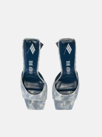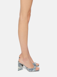 'Mini Devon'' mule in blue denim printed leather with pyramid heel, height 85mm. Made in Italy. Style 241WS772L091661 SIZE & FIT Model wears size 39. DETAILS Main leather: 100% calf bos taurus farm raised coo: Uganda, insole and lining: 100% goat leather dyed, capra hircus farm raised coo: India, sole: 100% bovine leather dyed, bos taurus farm raised coo: Western Europe, heel 85mm