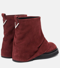 The Attico reimagines a classic silhouette with the Mini Robin combat boots, crafted in Italy from smooth suede. This bold design features silver-toned hardware and distinctive draped shafts for a statement-making touch. Product Details - Upper: leather (suede) - Lining: leather - Sole: leather insole and sole - Toe shape: square toe - Made in Italy - Includes: dust bag, shoe box - Designer color name: Burgundy - Item color: burgundy - Item number: P01069424 Size & Fit - True to size - Wide - European sizes - 4cm-1.5" heel (size EU 38) - 2,5cm-1" platform (size EU 38)