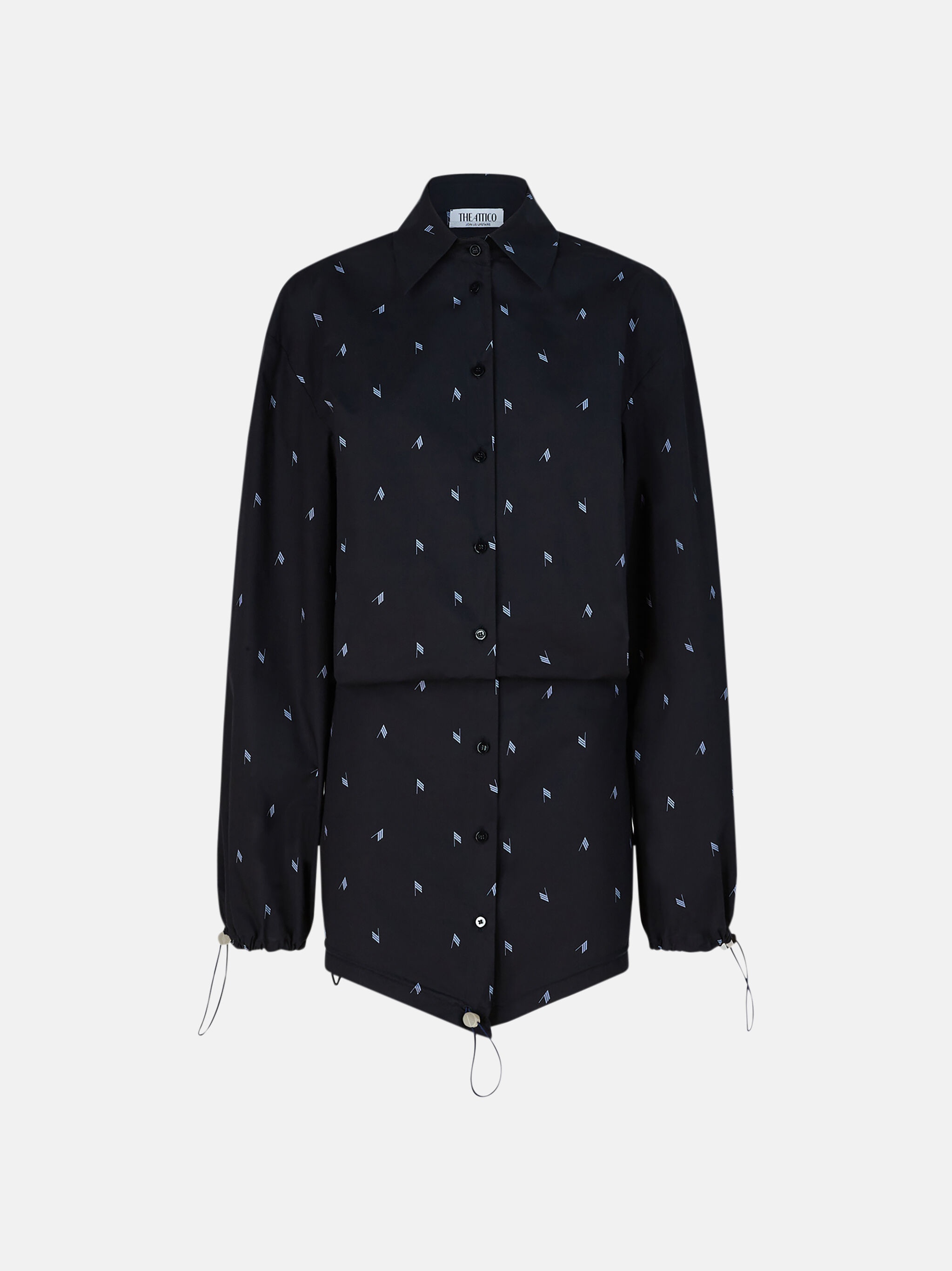 Mini shirt dress in navy blue and light blue logo printed popeline with fitted basque, drawstring detail and logo metal stops. Made in Italy. Style 241WCA277C079596 SIZE & FIT The model is wearing a size 40 and her height is 69,6 in, bust 31,4 in, waist 23,6 cm, hips 34,6 in - height 177 cm, bust 80 cm, waist 60 cm, hips 88 cm. Regular fit. We recommend taking your true size. DETAILS Main fabric: 100% cotton