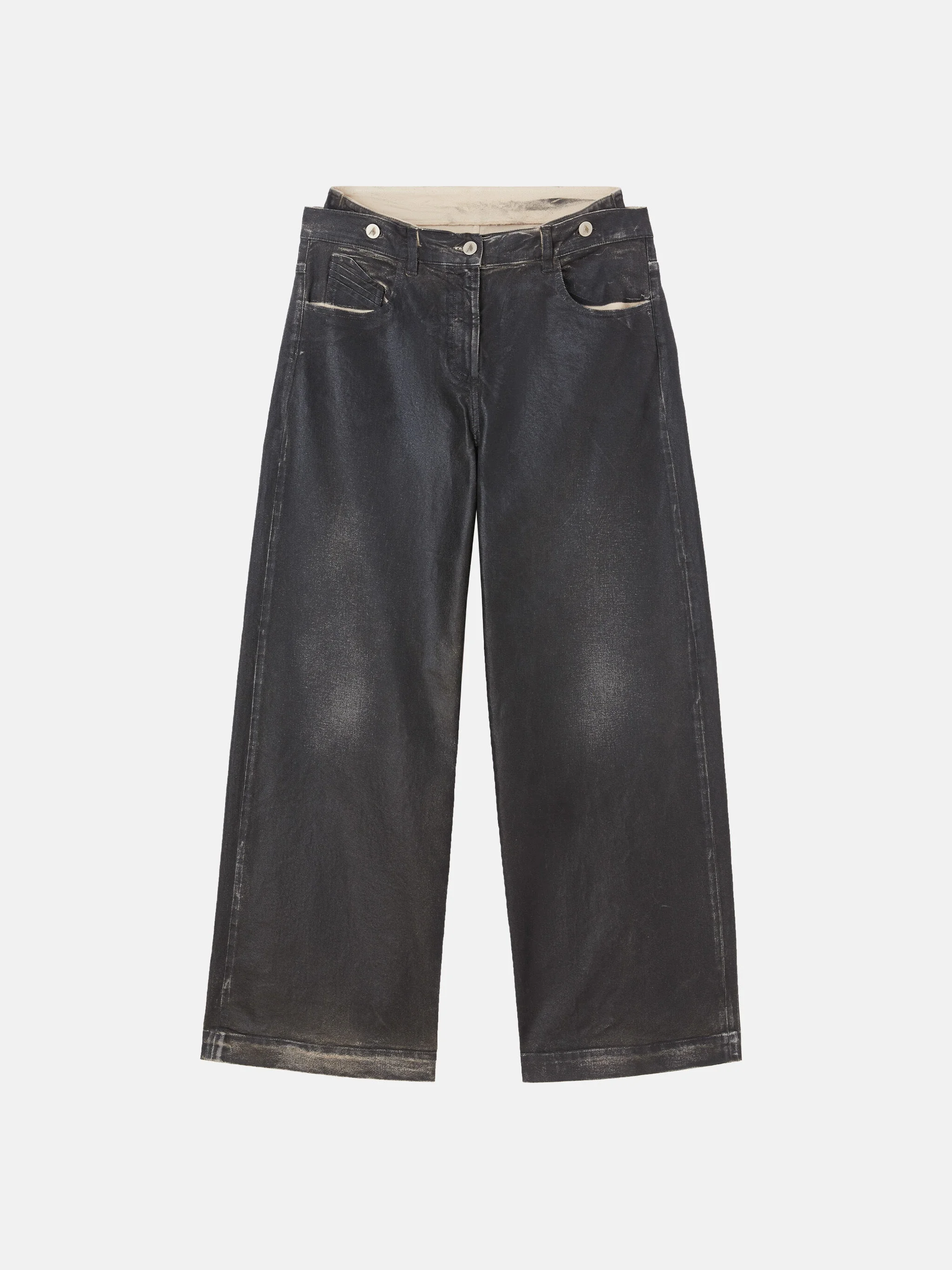 Long pants in navy blue mat coated canvas baggy with incorporated shorts and folded fifth pocket. Made in Italy. Style 250WCP00190DDD100AA184 SIZE & FIT The model is wearing a size 40 and her height is 69,6 in, bust 30,7 in, waist 23,2 in, hips 34,6 in - height 177 cm, bust 78 cm, waist 59 cm, hips 88 cm. Regular fit. We recommend taking your true size. DETAILS Main Material: 98% cotton 2% elastane, lining: 100% cotton