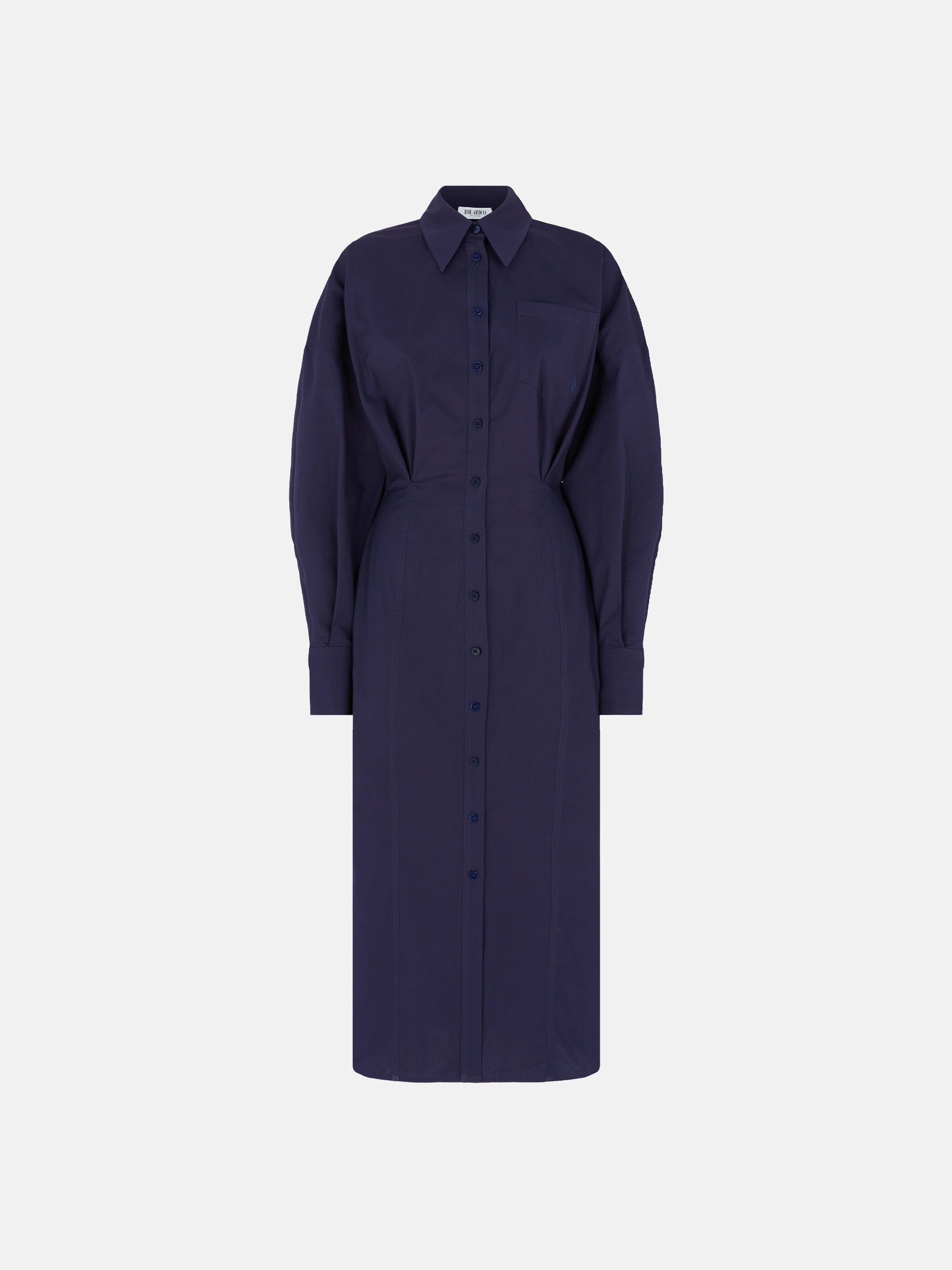 Shirt dress in navy blue stretch popeline. Made in Italy. Style 250WCW00187CCE001AA184 SIZE & FIT The model is wearing a size 40 and her height is 69,6 in, bust 30,7 in, waist 23,2 in, hips 34,6 in - height 177 cm, bust 78 cm, waist 59 cm, hips 88 cm. Regular fit. We recommend taking your true size. DETAILS Main Material: 97% cotton 3% elastane