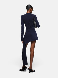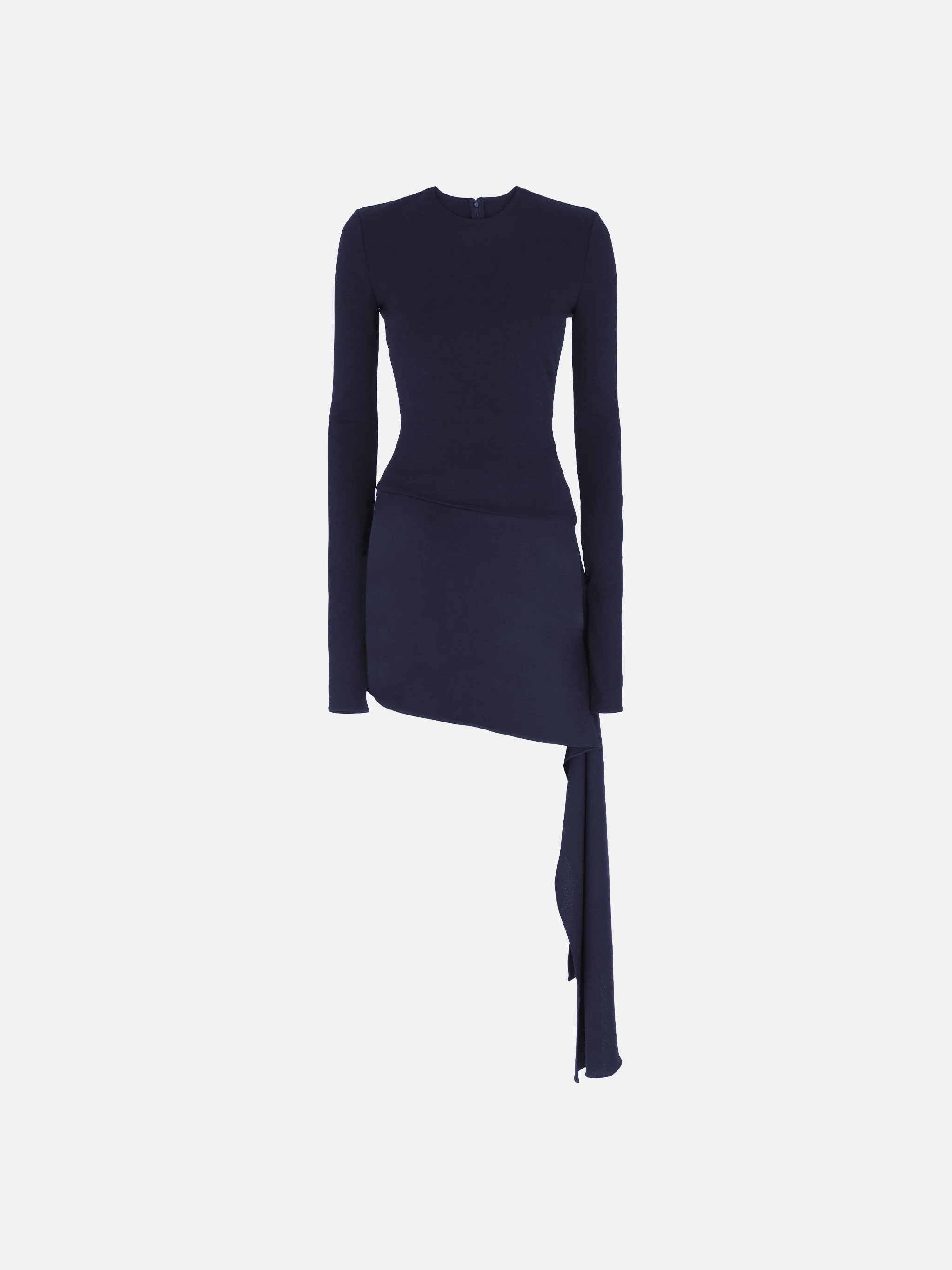Mini dress in navy blue sable'' with long sleeve body and handkerchief skirt. Style 250WCA00383PLL002AA184 SIZE & FIT The model is wearing a size 40 and her height is 69,6 in, bust 30,7 in, waist 23,2 in, hips 34,6 in - height 177 cm, bust 78 cm, waist 59 cm, hips 88 cm. Regular fit. We recommend taking your true size. DETAILS Main Material: 100% polyester
