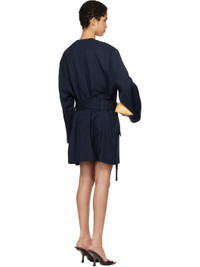 Virgin wool twill blazer. · Wrap construction · Y-neck · Welt pocket and flap pockets · Concealed button closure · Belt loops and detachable self-tie belt · Logo hardware at flap pocket · Twin vents at back hem · Partially lined Supplier color: Navy blue Body: 100% virgin wool. Lining: 100% cotton. Made in Italy 251528F095000