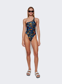One-piece Swimsuit Blue And Yellow Shades