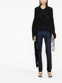 open-knit V-neck jumper Arriving in timeless black, this The Attico jumper is the go to piece from their SS23 collection. Crafted from an alpaca wool blend it's open knit construction gives it a unique identity. Made in Italy Composition Alpaca Wool 35%, Polyamide 28%, Viscose 15%, Mohair 11%, Polyester 11% SIZE & FIT Model measurements Height 5 ft 10 in(1.77 m) Bust/Chest 32.67 in(83 cm) Hips 35.43 in(90 cm) Waist 23.62 in(60 cm) FittingInformation This piece fits true to size. We recommend you get your regular size Cut for a loose fit Made with a mid-weight fabric Washing instructions Hand Wash