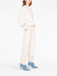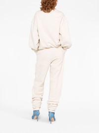 Penny logo-embossed cotton track pants The Attico exhibits a minimalist approach to design with the Penny track pants. Crafted from cotton, the pair arrive in an ivory white hue and are simply detailed with an embossed logo on the left thigh. Highlights - Ivory white - Cotton - Mid-rise - Two side slit pockets - Straight leg - Elasticated ankles Imported Composition Cotton 100% SIZE & FIT Model measurements Height 5 ft 10 in(1.77 m) Bust/Chest 27.95 in(71 cm) Hips 33.85 in(86 cm) Waist 23.22 in(59 cm) Measurement INSIDE LEG 31.49 in(80 cm) HIPS 37 in(94 cm) WAIST 22.83 in(58 cm) FittingInformation Designed for a relaxed tapered cut, these trousers allow for a close fit at the waist and offer a loose fit at the thighs, with a closer fit toward the ankles The elasticated waist allows for a comfortable fit Made from a midweight non-stretch fabric, this piece offers minimal elasticity when worn This piece fits true to size – take your usual size