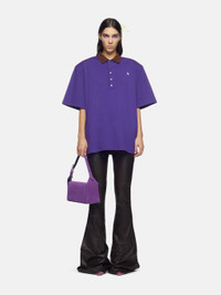 'Piaf'' flared long pants in dark brown leather with high-rise waist and logo metal stud. Made in Romania. Style 236WCP133L054204 SIZE & FIT The model is wearing a size 40 and her height is 70,4 in, bust 30,7 in, waist 21,6 in, hips 34,6 in - height 179 cm, bust 80 cm, waist 60 cm, hips 90 cm. Regular fit. We recommend taking your true size. DETAILS Main leather: 100% lamb leather (ovis aries aries ), dyed, farm raised, coo: Algeria, lining: 100% cupro, lining pocket: 100% cotton