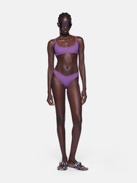 Bikini in purple lycra rib with logo metal ends. Made in Italy. Style 243WBB06PA16035 SIZE & FIT The model is wearing a size S and her height is 5,10 in, bust 31,5 in, waist 23 in, hips 34,5 in - height is 176 cm, bust 79 cm, waist 58 cm, hips 87 cm. Tight fit. Size up for a comfortable fit. DETAILS Main fabric: 88% nylon 12% elastane, lining: 84% nylon 16% elastane