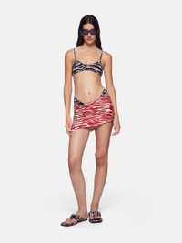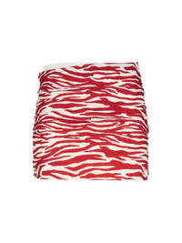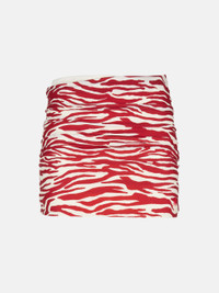 Gathered mini skirt in red and milk zebra printed lycra with printed logo. Made in Italy. Style 243WBB09PA14649 SIZE & FIT The model is wearing a size S and her height is 5,10 in, bust 31,5 in, waist 23 in, hips 34,5 in - height is 176 cm, bust 79 cm, waist 58 cm, hips 87 cm. Regular fit. We recommend taking your true size. DETAILS Main fabric: 80% nylon 20% elastane, lining: 90% nylon 10% elastane