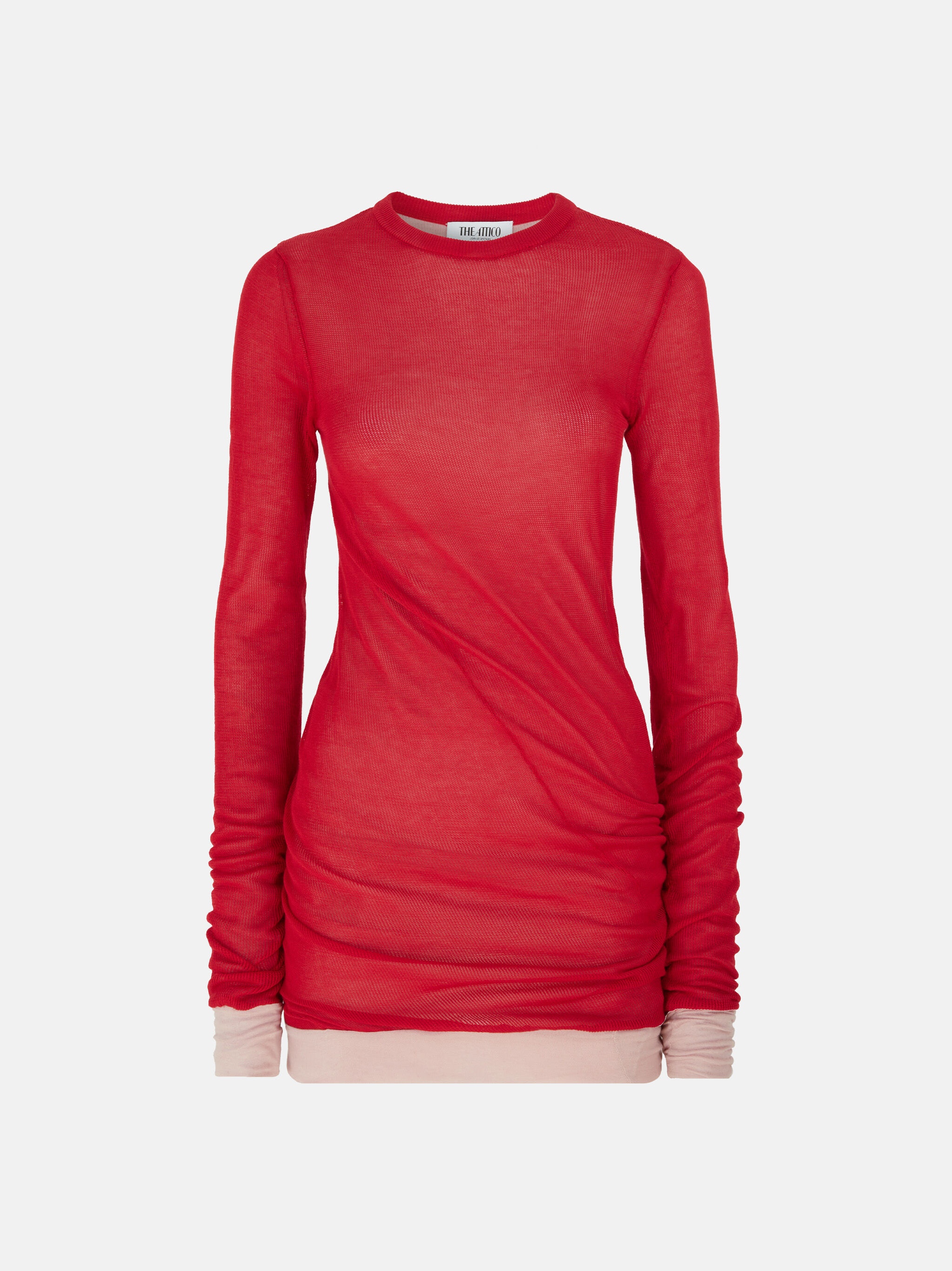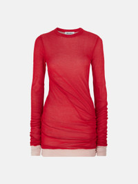 Mini dress in red and pink double jersey yarn. Made in Italy. Style 250WCA00340KVV011AA410 SIZE & FIT The model is wearing a size 40 and her height is 69,6 in, bust 30,7 in, waist 23,2 in, hips 34,6 in - height 177 cm, bust 78 cm, waist 59 cm, hips 88 cm. Regular fit. We recommend taking your true size. DETAILS Main Material: 86% cotton 12% modal 1% cashmere 1% elastodiene