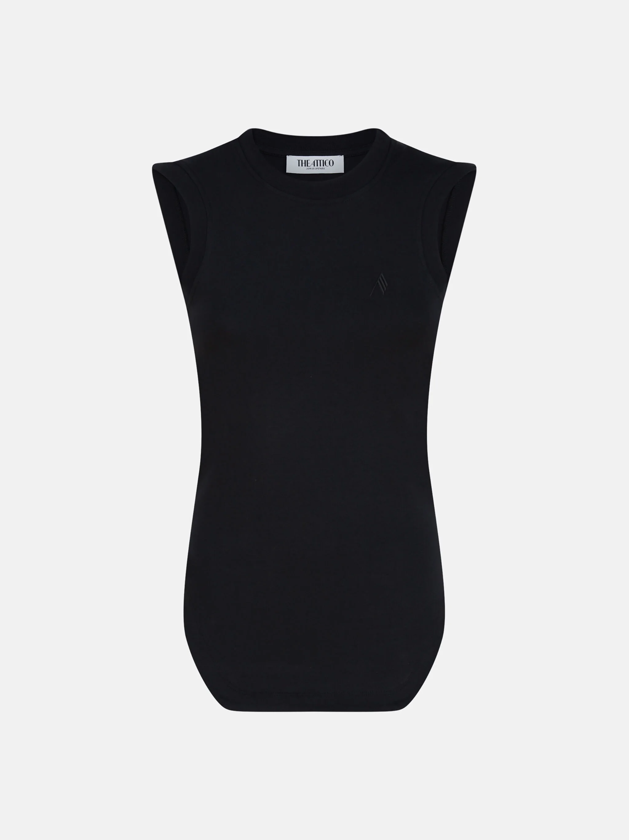 Reese'' armhole tank top in black light jersey with shaped bottom and embroidered logo. Made in Italy. Style 250WCN00003JJJ025AA100 SIZE & FIT The model is wearing a size 40 and her height is 69,6 in, bust 30,7 in, waist 23,2 in, hips 34,6 in - height 177 cm, bust 78 cm, waist 59 cm, hips 88 cm. Regular fit. We recommend taking your true size. DETAILS Main Material: 100% cotton, rib: 100% cotton