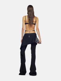 'Remi'' flared long pants in black compact techno jersey with high-rise waist, cut-out details on the hips, chain and logo metal plate. Made in Italy. Style 236WCP124RY02100 SIZE & FIT The model is wearing a size 40 and her height is 70,4 in, bust 30,7 in, waist 21,6 in, hips 34,6 in - height 179 cm, bust 80 cm, waist 60 cm, hips 90 cm. Relaxed, oversized fit. We recommend taking one size smaller. DETAILS Main fabric: 68% rayon 27% polyamide 5% elastane