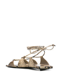 Renee leather sandals Highlights - Sand beige/black - Calf leather - Snakeskin effect - Square open toe - Open back - Tie-fastening straps - Branded leather insole - Leather outsole - This piece comes complete with a protective dust bag. Made in Italy Composition Outer: Calf Leather 100% Sole: Calf Leather 100% Lining: Calf Leather 100%