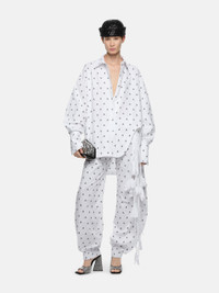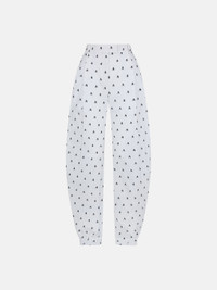'Rey'' long pants in white parachute canvas and black all-over logo with wide leg. Made in Italy. Style 231WCP103C052R020 SIZE & FIT The model is wearing a size 40 and her height is 70,4 in, bust 31,4 in, waist 23,6 in, hips 35,4 in - height 179 cm, bust 80 cm, waist 60 cm, hips 90 cm. Relaxed, oversized fit. We recommend taking one size smaller. DETAILS Main fabric: 100% cotton, lining: 100% cotton