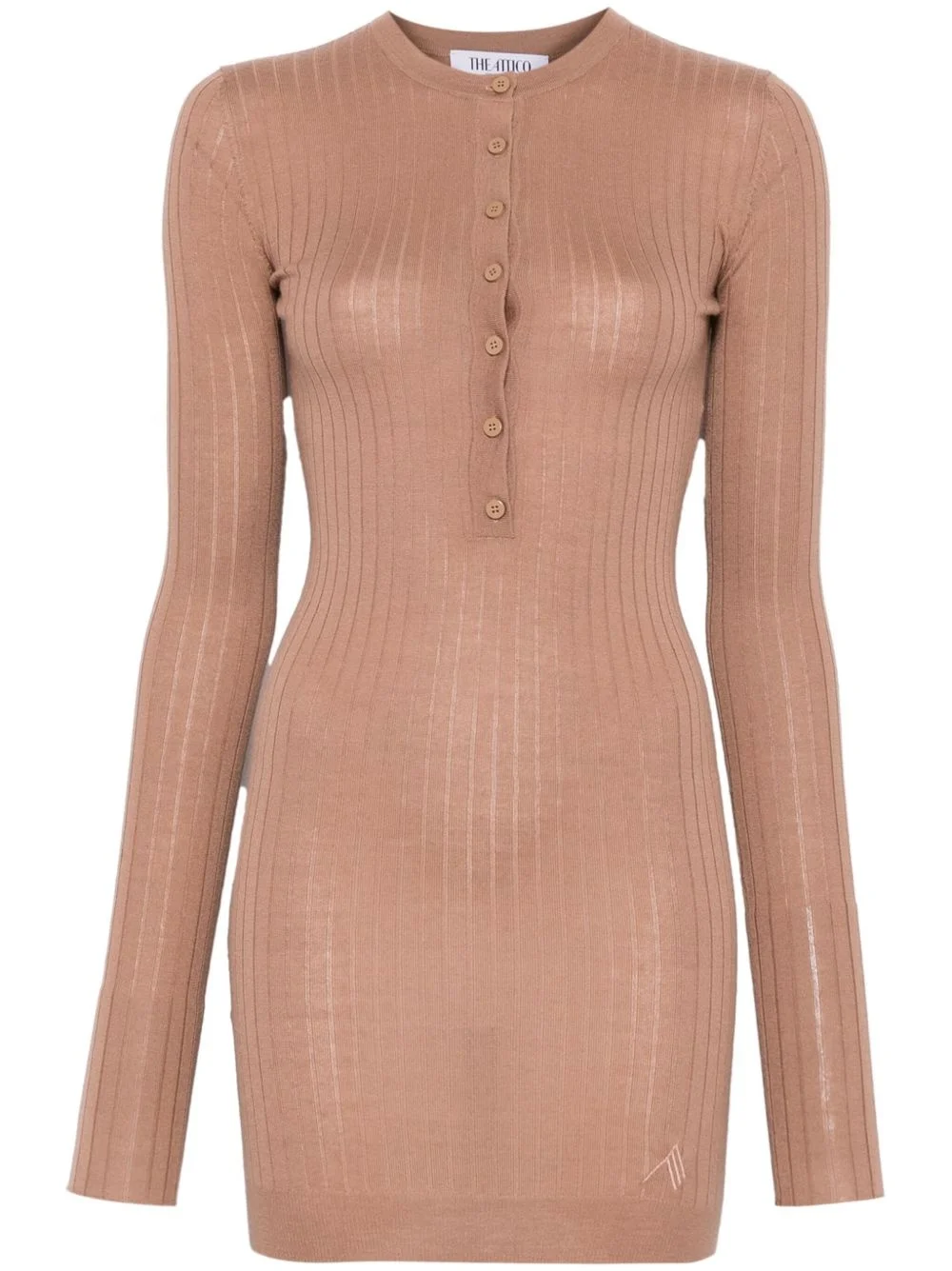 chunky-ribbed mini dress Highlights - Camel brown - Short front button fastening - Ribbed cuffs and hem - Embroidered logo to the front - Extra-long sleeves Imported Composition Silk 100% SIZE & FIT Model measurements Height 5 ft 10 in(1.78 m) Bust/Chest 33.46 in(85 cm) Hips 36.22 in(92 cm) Waist 23.22 in(59 cm) FittingInformation Designed for a close fit throughout Made with a lightweight knit, this piece offers some stretch Measurement SLEEVE LENGTH 29.01 in(73.7 cm) HIPS 22 in(55.9 cm) LENGTH 34.01 in(86.4 cm) WAIST 22 in(55.9 cm) BUST 27.99 in(71.1 cm)