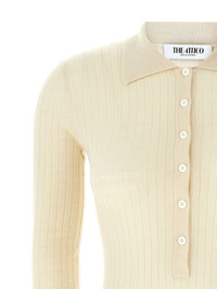 ribbed sweater Highlights - White - Short front button fastening - Classic collar - Long sleeves - Embroidered logo to the side Imported Composition Cashmere 70%, Silk 30%