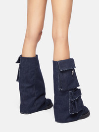 ''Robin'' fern multi-pocket combat boot in dark blue washed denim fabric with one block multilayer micro and leather black sole. Made in Italy. Style 247WS833D001751 SIZE & FIT Model wears size 39. DETAILS Main fabric: 100% cotton, insole and lining: 100% goat leather dyed, capra hircus hircus farm raised coo: India, sole: 80% polyurethane, 20% bos taurus farm raised.