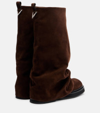 The Attico’s message is simple – it’s time to dress up. Finished with silver-toned logo hardware, the Robin knee-high boots feature contemporary squared toes. Product Details - Upper: leather (suede) - Lining: leather - Sole: leather insole and sole - Toe shape: round toe - Made in Italy - Includes: shoe box, dust bag - Designer color name: Dark Brown - Item color: brown - Hardware color: silver - Item number: P01128787 Size & Fit - True to size - For narrow feet, we recommend trying a half size smaller - European sizes - 4cm-1.5" heel (size EU 38) - 3cm-1" platform (size EU 38) - 34cm-13.5" shaft height (size EU 38) - 40cm-15.5" shaft width (size EU 38) - shaft width measured on largest part of boot
