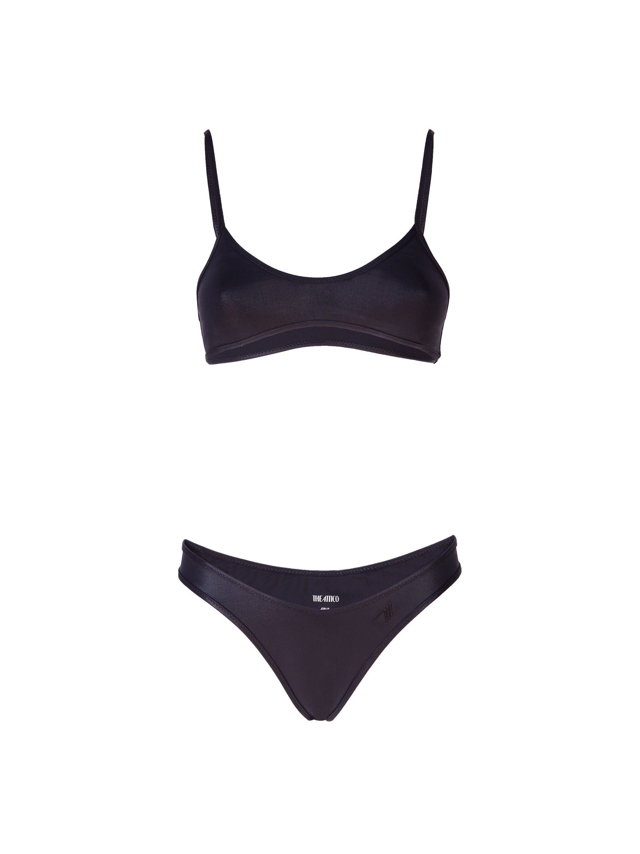 Bikini in black wet effect lycra with printed logo. Made in Italy. Style 243WBB90PA63100 SIZE & FIT The model is wearing a size S and her height is 5,10 in, bust 31,5 in, waist 23 in, hips 34,5 in - height is 176 cm, bust 79 cm, waist 58 cm, hips 87 cm. Tight fit. Size up for a comfortable fit. DETAILS Main fabric: 87% nylon 13% elastane, lining: 84% nylon 16% elastane