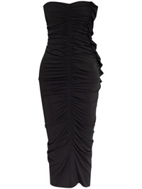 ruched midi dress Highlights - Black - Jersey texture - Ruffled detailing - Ruched detailing - Strapless - Concealed rear zip fastening - Straight hem - Mid-length Made in Italy Composition Acetate 75%, Polyamide 20%, Fabric 5%