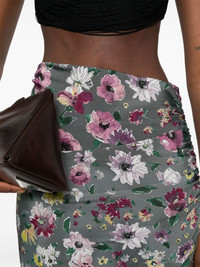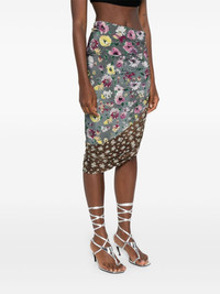 ruched patchwork midi skirt Highlights - Chocolate brown - High-waisted - Floral print - Asymmetric hem - Mid-length Made in Italy Composition Viscose 96%, Elastane 4% SIZE & FIT Model measurements Height 5 ft 10 in(1.78 m) Bust/Chest 31.49 in(80 cm) Hips 37 in(94 cm) Waist 23.62 in(60 cm) FittingInformation Designed with an asymmetric hem, this skirt is intended to be worn just below the waist Made from a midweight stretch fabric, this piece offers elasticity and flexibility when worn Washing instructions Dry Clean Only