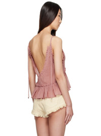 Lightweight woven cotton top. Ruffled trim throughout. · Paneled construction · V-neck · Peplum hem · Self-tie shoulder straps · Low back Supplier color: Terracotta 100% cotton. Made in Italy 252528F111002