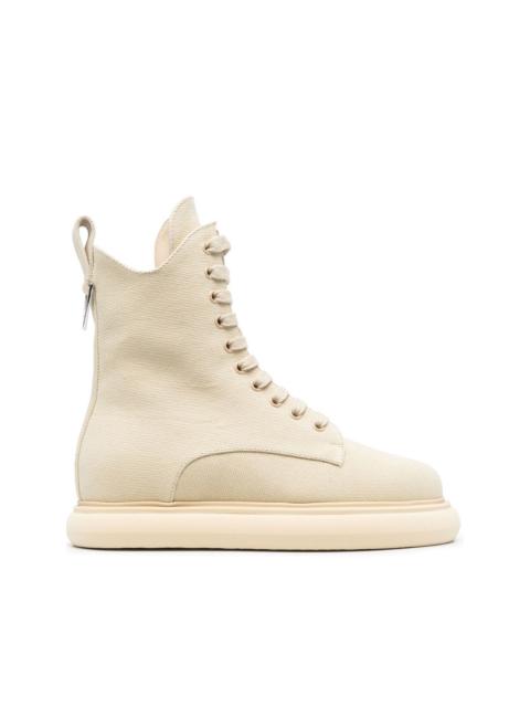 Selene platform-sole mid-calf boots Showcasing the bold aesthetic that forms part of The Attico's personality, these boots are given a modern feel thanks to their eye-catching flatform sole. The more classic lace-up upper reflects the calmer aspect of the brand. Made in Italy Composition Lining: Leather 100% Sole: Rubber 100% Outer: Fabric 100% SIZE & FIT Measurement HEEL 1.37 in(3.5 cm) Sole height 1.37 in(3.5 cm) HEIGHT 7.08 in(18 cm)