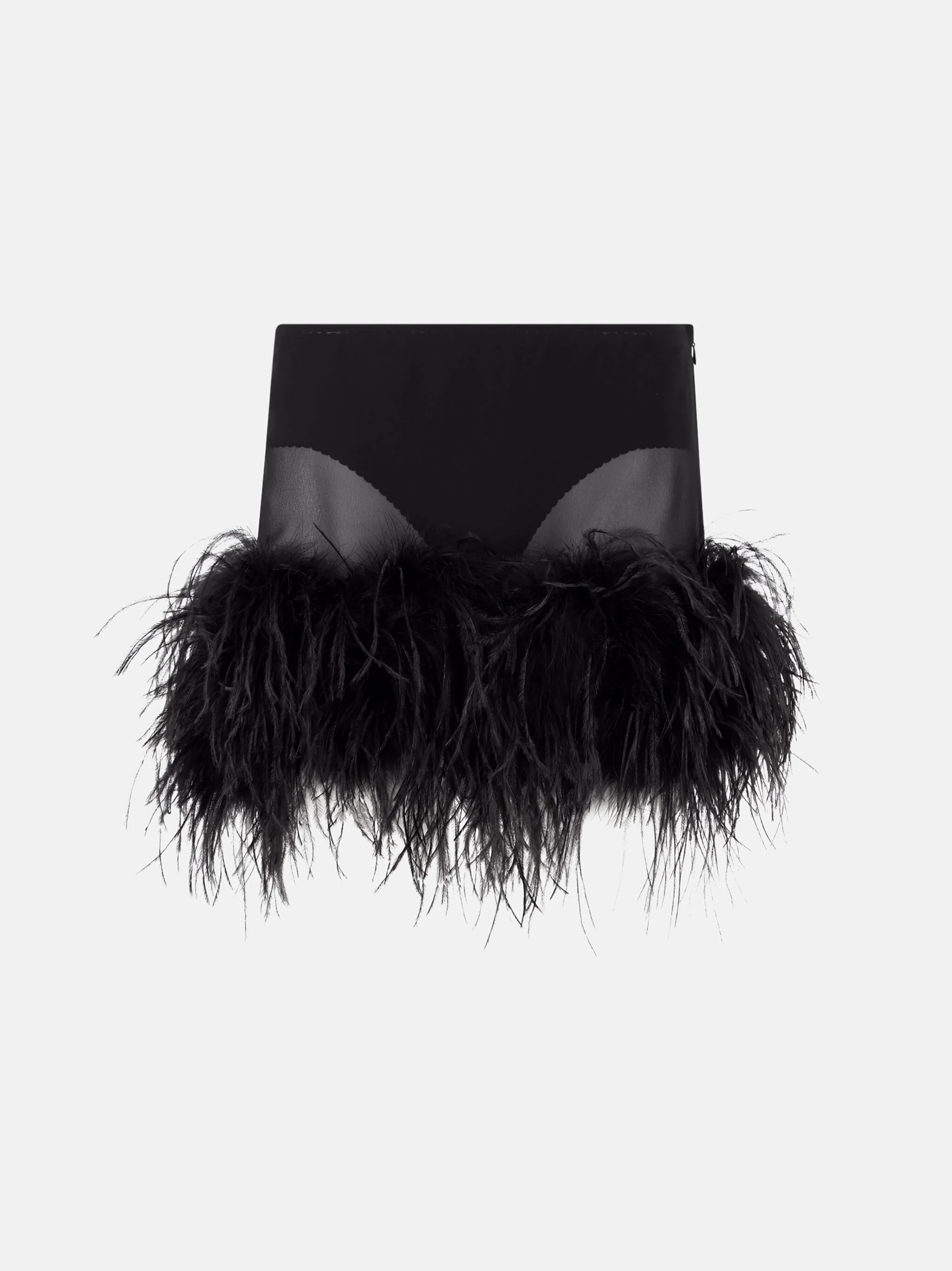Mini skirt in black georgette with embroidered marabu. Made in Italy. Style 260WCR00153PAA085MB100 SIZE & FIT The model is wearing a size 40 and her height is 179 cm, bust 80 cm, waist 60 cm, hips 88 cm - Height 5,10 in, bust 31,4 in, waist 23 in, hips 35 in. Regular fit. We recommend taking your true size. DETAILS Main material: 100% polyester, second material: 80% polyamide 20% elastane, embroidery: 100% ostrich & turkey feathers (struthio camelus australis & meleagris gallopavo) farm raised coo: South Africa & China