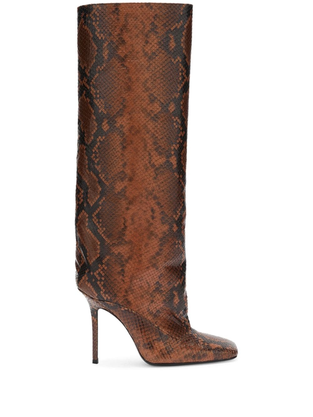 105mm Sienna boots Highlights - Brown/black - Leather - Snakeskin effect - Slip-on style - Square toe - Stiletto heel Made in Italy Composition Lining: Calf Leather 100% Outer: Calf Leather 100% Sole: Calf Leather 100% SIZE & FIT Measurement HEEL 4.13 in(10.5 cm)