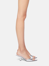 ''Bes'' mule in silver laminated leather with metallic silver heel, height 65mm. Made in Italy. Style 248WS838L070002 SIZE & FIT Model wears size 39. DETAILS Main leather: 100% lamb leather dyed, ovis aries aries farm raised coo: South Africa, insole and lining: 100% sheep leather, ovis aries aries farm raised coo: Nigeria, sole: 100% bovine leather dyed, bos taurus farm raised coo: Western Europe. Heel 65mm.