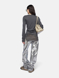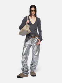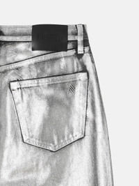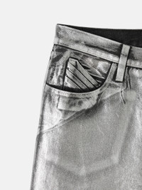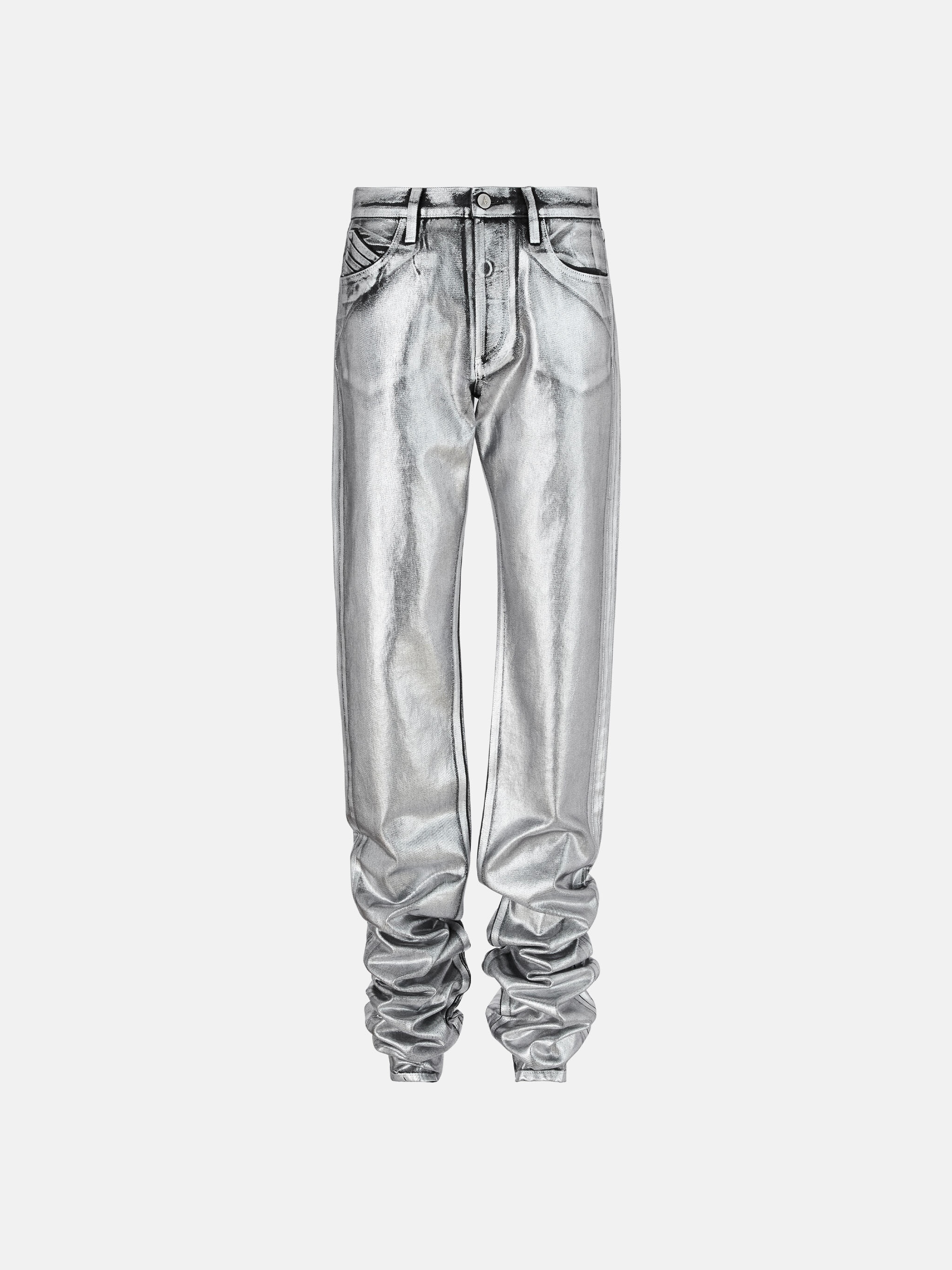 Long pants in silver shiny coated denim with long criped leg and fifth pocket. Made in Italy. Style 250WCP00214DDD103SS002 SIZE & FIT The model is wearing a size 40 and her height is 69,6 in, bust 30,7 in, waist 23,2 in, hips 34,6 in - height 177 cm, bust 78 cm, waist 59 cm, hips 88 cm. Regular fit. We recommend taking your true size. DETAILS Main Material: 100% cotton, lining: 65% polyester 35% cotton