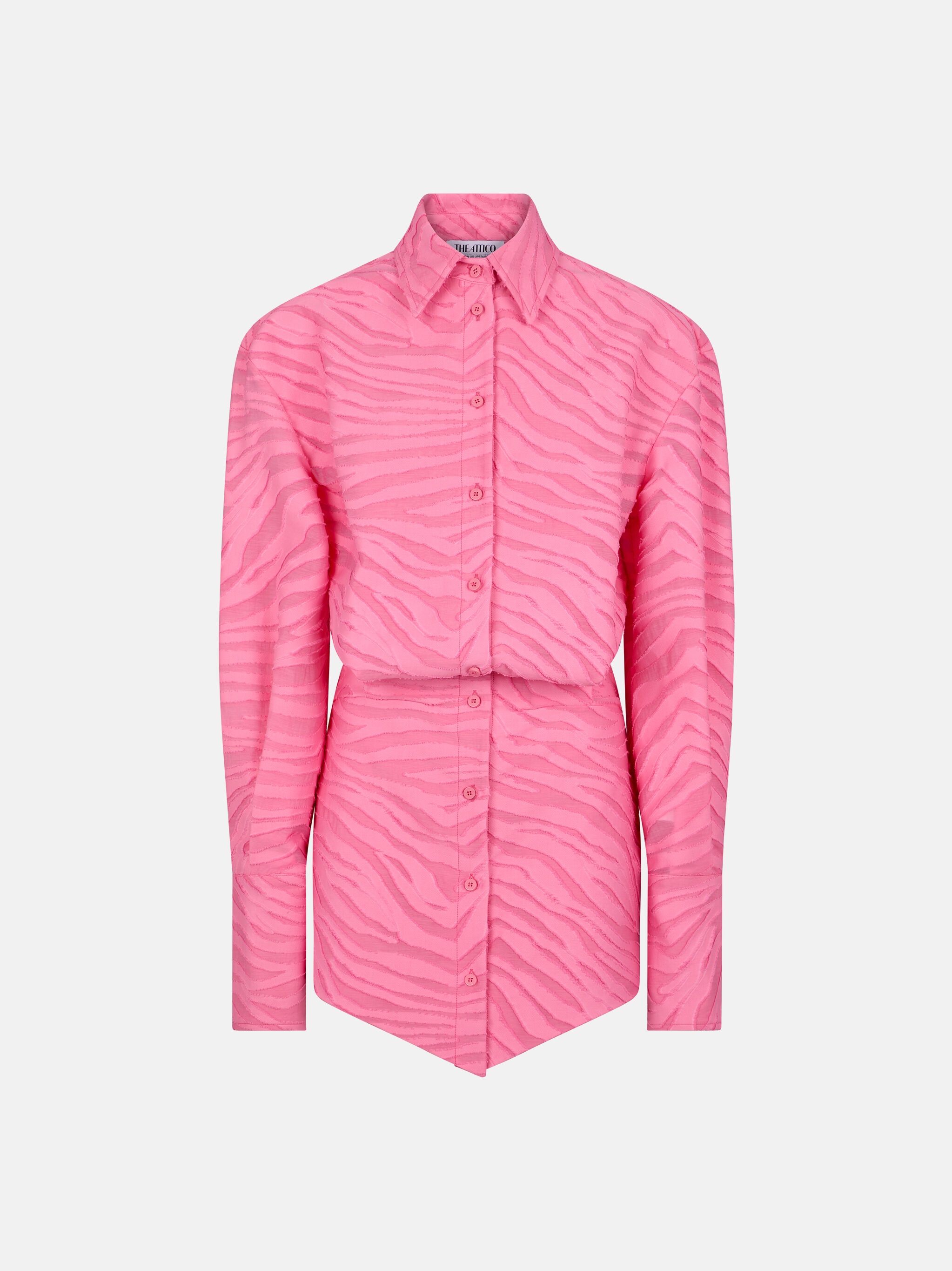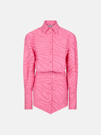 ''Silvye'' mini shirt dress in geranium cotton zebra fil coupè with fitted basque and embroidered logo. Style 232WCA93C064119 SIZE & FIT The model is wearing a size 40 and her height is 179 cm, bust 80 cm, waist 60 cm, hips 90 cm. Regular fit. We recommend taking your true size. DETAILS Main Fabric: 93% cotton 7% polyamid, lining: 100% polyester