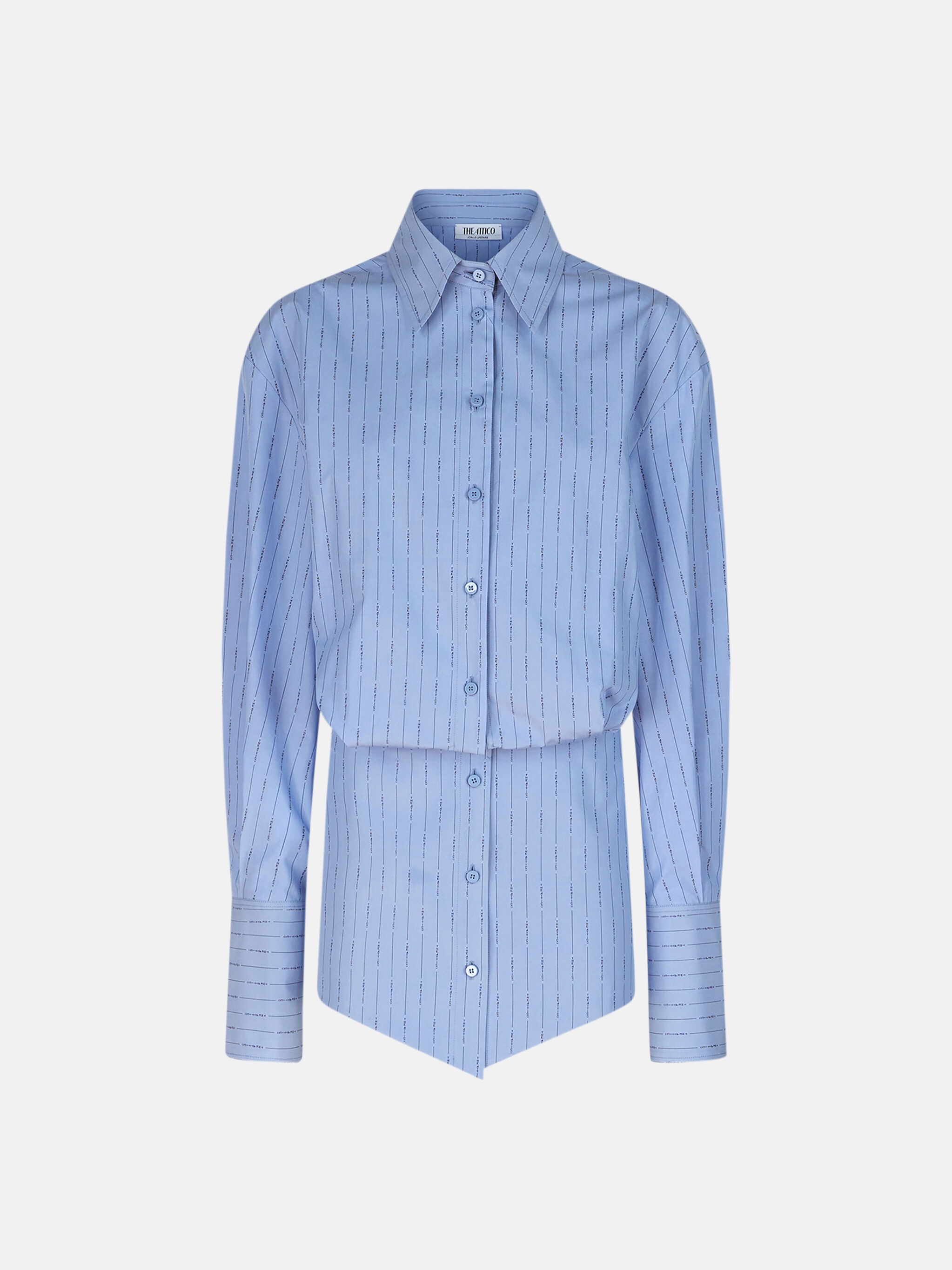 'Silvye'' mini shirt dress in navy blue and sky striped logo cotton jacquard with fitted basque. Made in Italy. Style 242WCA93C078600 SIZE & FIT The model is wearing a size 40 and her height is 69,6 in, bust 31,4 in, waist 23,6 cm, hips 34,6 in - height 177 cm, bust 80 cm, waist 60 cm, hips 88 cm. Regular fit. We recommend taking your true size. DETAILS Main fabric: 100% cotton