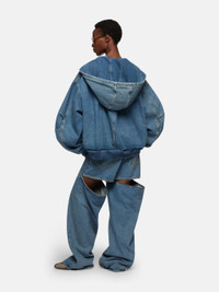 Bomber in sky blue washed denim. Made in Italy. Style 251WCB00066DDD085AA024 SIZE & FIT The model is wearing a size 40 and her height is 70 in, bust 31,1 in, waist 24 in, hips 34,6 in - height 178 cm, bust 79 cm, waist 61 cm, hips 88 cm. Regular fit. We recommend taking your true size. DETAILS Main material: 100% cotton, lining: 65% polyester 35% cotton