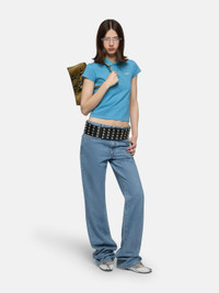 Long pant in sky blue washed denim. Made in Italy. Style 251WCP00281DDD085AA024 SIZE & FIT The model is wearing a size 26 and her height is 70 in, bust 31,1 in, waist 24 in, hips 34,6 in - height 178 cm, bust 79 cm, waist 61 cm, hips 88 cm. Regular fit. We recommend taking your true size. DETAILS Main material: 100% cotton, lining: 65% polyester 35% cotton