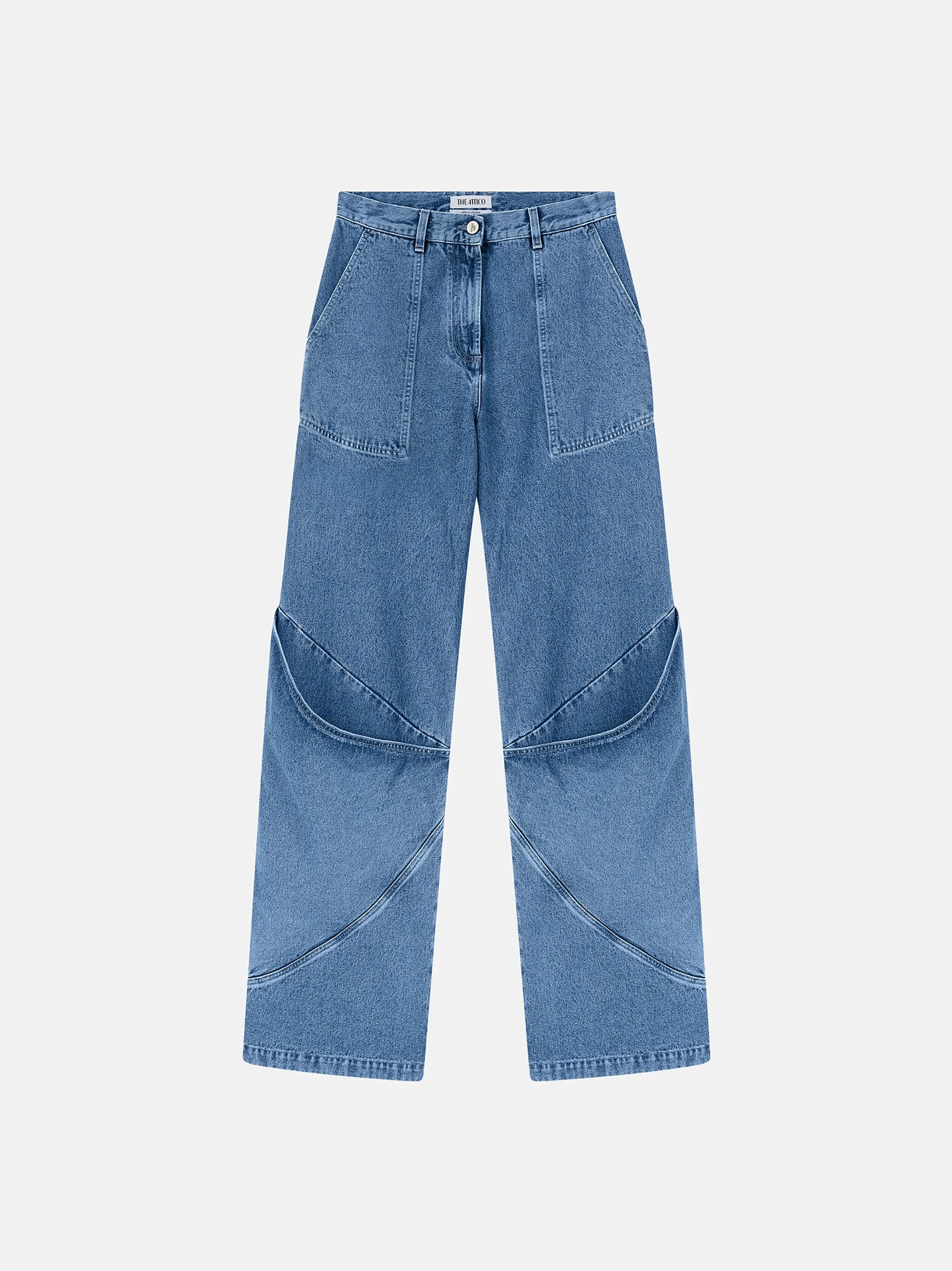 Long pants in sky blue denim with pockets on the back and on the knee and embroidered logo. Made in Italy. Style 247WCP198D085024 SIZE & FIT The model is wearing a size 26 and her height is 69,6 in, bust 30,7 in, waist 23,2 in, hips 34,6 in - height 177 cm, bust 78 cm, waist 59 cm, hips 88 cm. Regular fit. We recommend taking your true size. DETAILS Main material: 100% cotton, lining: 65% polyester 35% cotton