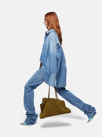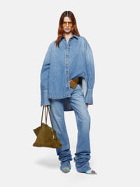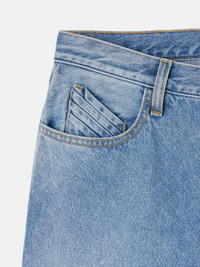 Long pants in sky blue washed denim with long criped leg and fifth pocket. Made in Italy. Style 250WCP00214DDD085AA024 SIZE & FIT The model is wearing a size 40 and her height is 69,6 in, bust 30,7 in, waist 23,2 in, hips 34,6 in - height 177 cm, bust 78 cm, waist 59 cm, hips 88 cm. Regular fit. We recommend taking your true size. DETAILS Main Material: 100% cotton, lining: 65% polyester 35% cotton