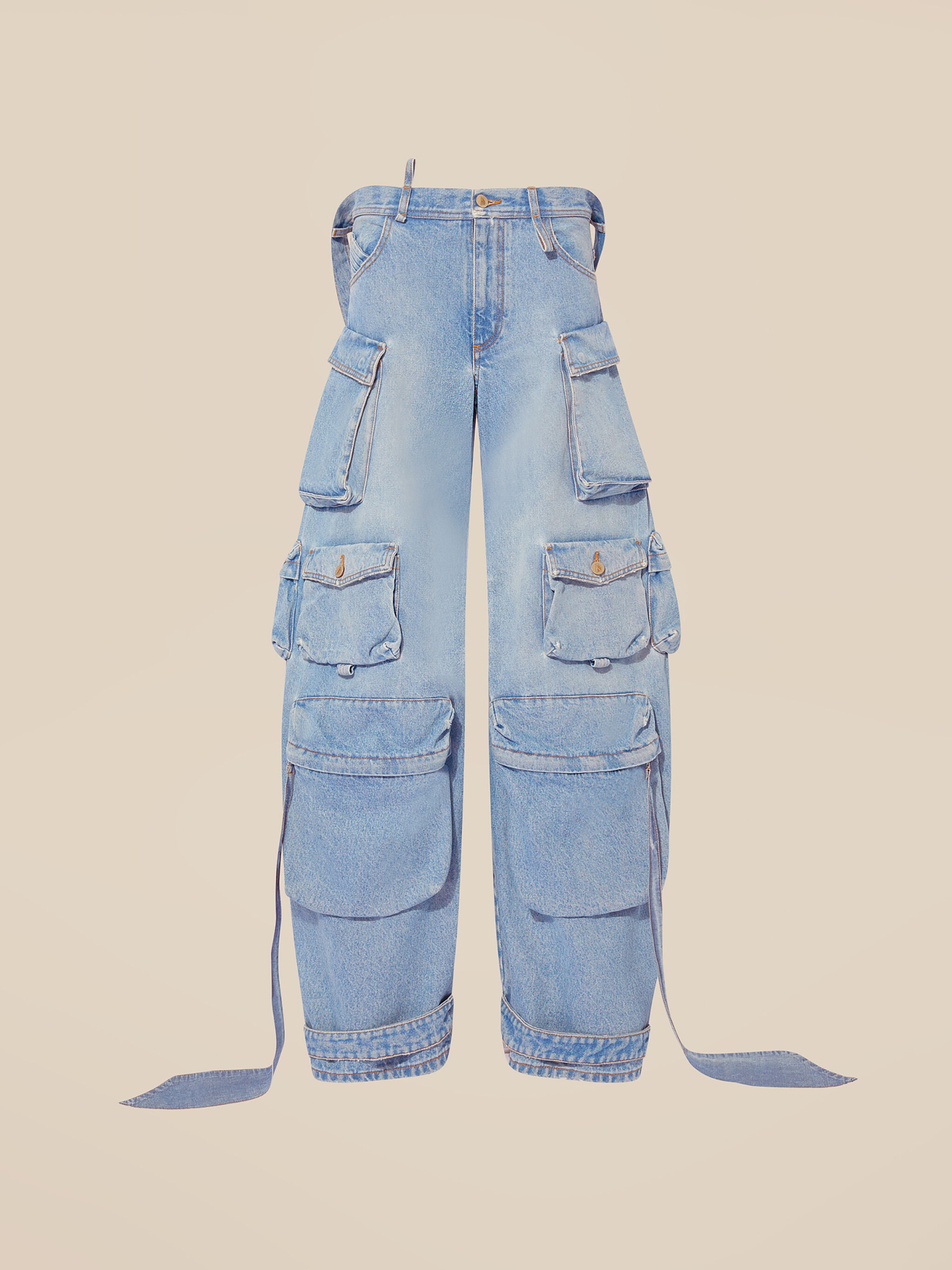 Long pants in sky blue treated cotton canvas with multi-pockets, folded fifth pocket and embroidered logo and cut out details on the back. Made in Italy. Style 246WCP180D085024 SIZE & FIT The model is wearing a size 40 and her height is 70,4 in, bust 29,9 in, waist 23,6 in, hips 33,8 in - height 179 cm, bust 76 cm, waist 55 cm, hips 86 cm.. Relaxed, oversized fit. We recommend taking one size smaller. DETAILS Main fabric: 100% cotton, lining: 65% polyester 35% cotton