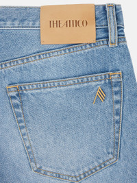 Boyfriend short pants in sky blue washed denim with folded fifth pocket. Made in Italy. Style 250WCQ00005DDD085AA024 SIZE & FIT The model is wearing a size 40 and her height is 69,6 in, bust 30,7 in, waist 23,2 in, hips 34,6 in - height 177 cm, bust 78 cm, waist 59 cm, hips 88 cm. Regular fit. We recommend taking your true size. DETAILS Main Material: 100% cotton, lining: 65% polyester 35% cotton