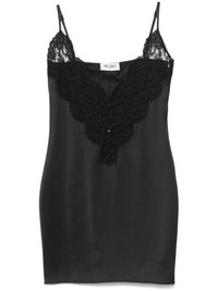 lace-panel mini dress Highlights - Black - Front button fastening - V-neck - Adjustable spaghetti straps - Slip silhouette Made in Italy Composition Viscose 100%, Cotton 90%, Polyamide 10% SIZE & FIT Model measurements Height 5 ft 10 in(1.77 m) Bust/Chest 33.07 in(84 cm) Hips 37 in(94 cm) Waist 24.8 in(63 cm) FittingInformation Designed for a relaxed fit, this piece allows for comfort and movement when worn The adjustable shoulder straps allow for a preferred fit when worn Made from a lightweight stretch fabric, this piece offers elasticity and flexibility when worn