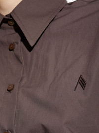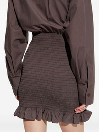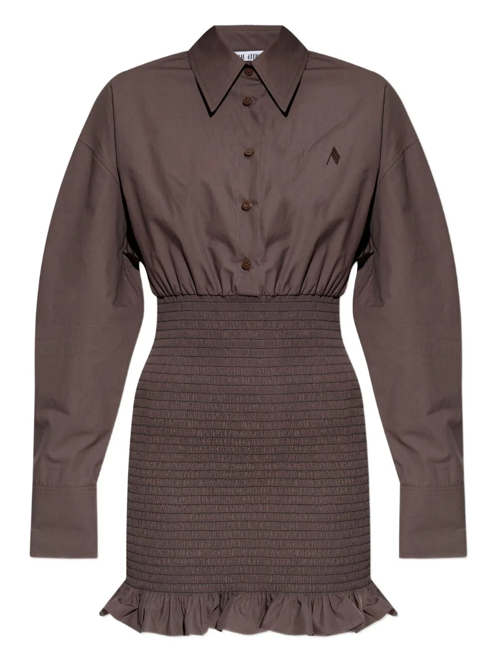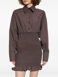 smocked ruffled mini dress Highlights - Brown - Smocked design - Ruffled hem - Shirt collar - Long sleeves - Button fastening Made in Italy Composition Cotton 100% Washing instructions Read Manufacturer Guidelines