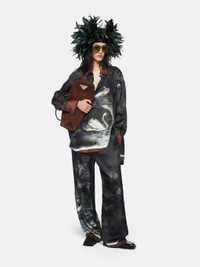 Wide trousers in smoke night landscape printed twill with drawstring on the waist. Made in Italy. Style 250WCP00258SSS015PR867 SIZE & FIT The model is wearing a size 40 and her height is 69,6 in, bust 30,7 in, waist 23,2 in, hips 34,6 in - height 177 cm, bust 78 cm, waist 59 cm, hips 88 cm. Regular fit. We recommend taking your true size. DETAILS Main Material: 100% silk