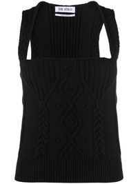 Sofia knitted sleeveless top Drawing inspiration from classic corset silhouettes, The Attico's Sofia top is made in Italy from a soft blend of cotton and woven into a cable knit design. Its contemporary square neckline channels the brand's penchant for streetwear-inspired garments Made in Italy Composition Cotton 59%, Polyamide 40%, Spandex/Elastane 1% SIZE & FIT Model measurements Height 5 ft 10 in(1.77 m) Bust/Chest 32.67 in(83 cm) Hips 35.43 in(90 cm) Waist 23.62 in(60 cm)