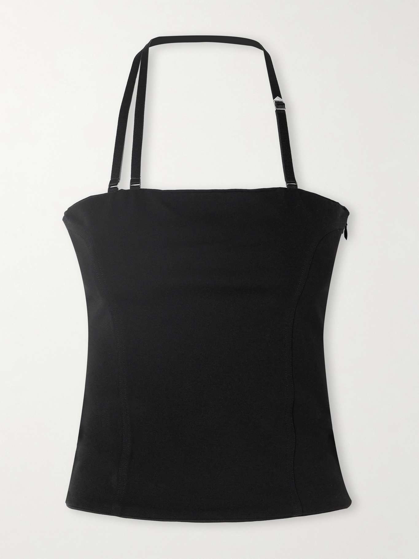 EDITORS'NOTES The slim halter straps and bandeau-style bodice give The Attico's top a minimalist, '90s feel. It's made from smooth stretch-jersey and has a close, figure-hugging fit. Lean into the era and wear yours with a denim midi skirt. SIZE & FIT Model measurements: - Fits true to size, take your normal size - Designed for a slim fit - Mid-weight, stretchy fabric - Model is 180cm/ 5'11" and is wearing an IT 40 - Bust: 80cm/ 31.5" - Waist: 67cm/ 26" - Hip: 89cm/ 35" DETAILS & CARE - Black stretch-jersey - Concealed hook and zip fastening at side - 68% rayon, 27% polyamide, 5% elastane - Machine wash