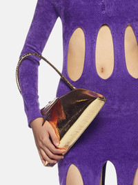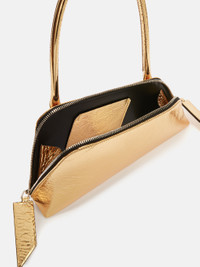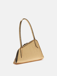 'Sunrise'' shoulder bag in gold craquele laminated leather with shoulder strap and ziptop closure. Made in Italy. Style 236WAH42L070545 SIZE & FIT Height 7 inch, width 11,6 inch, depth 1,8 inch DETAILS Main leather: 100% goat capra hircus farm raised coo: Mongolia, lining: 51% polyurethane, 49% (70% cotton 30% polyester), Inside pocket: 100% goat capra hircus farm raised coo: Mongolia.