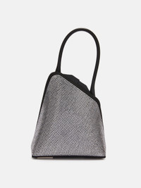 ''Sunset'' shoulder bag in black satin with crystal thermo-adhesive rhinestones, magnetic closure. Style 236WAH44TV07569 SIZE & FIT Height 5,12 inch, width 7,3 inch, depth 2,4 inch DETAILS Main fabric: 100% polyester, strass: 100% silicon dioxide with metallic oxide, second material: 100% calf bos taurus farm raised coo: USA, lining: 51% polyurethane, 49% (70% cotton 30% polyester), inside pocket: 100% calf bos taurus farm raised coo: USA.