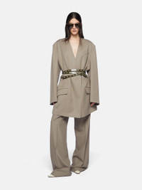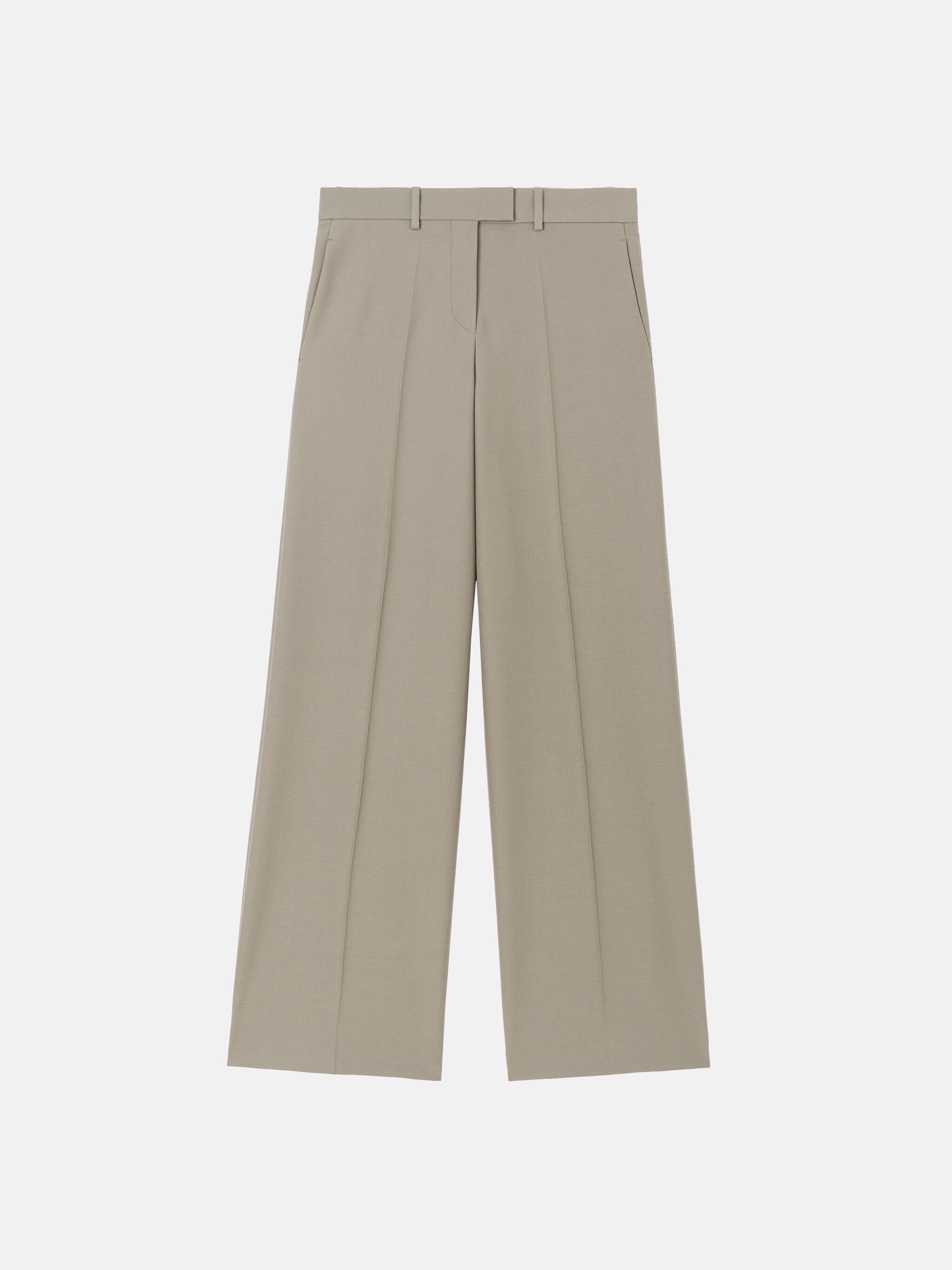 Wide leg trousers in taupe gabardine with low waist. Made in Italy. Style 250WCP00253WWW046AA215 SIZE & FIT The model is wearing a size 40 and her height is 69,6 in, bust 30,7 in, waist 23,2 in, hips 34,6 in - height 177 cm, bust 78 cm, waist 59 cm, hips 88 cm. Regular fit. We recommend taking your true size. DETAILS Main Material: 100% virgin wool, lining: 100% viscose