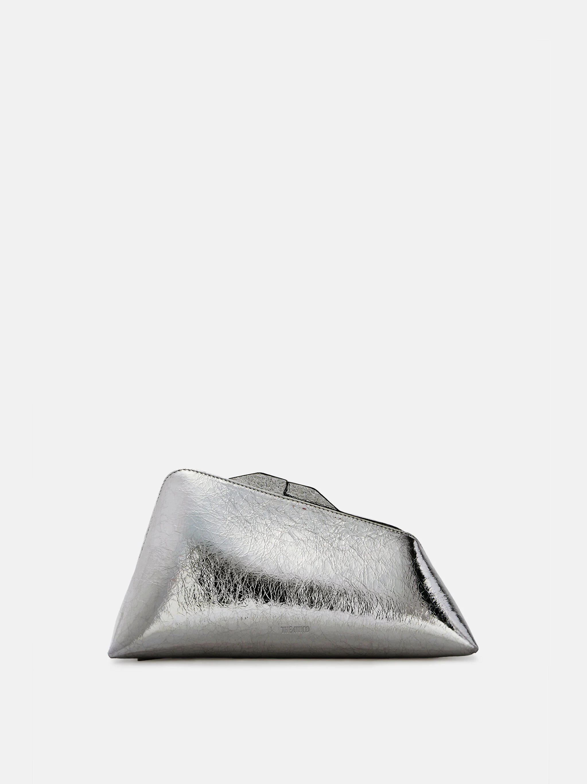 ''8.30PM'' oversized clutch in silver crackled laminated leather with magnetic closure. Made in Italy. Style 241WAH00001LBT070AA002 SIZE & FIT Height 6,7 inch, width 12,6 inch, depth 5,9 inch - Height 17 cm, width 32 cm, depth 15 cm DETAILS Main Leather: 100% calf bos taurus farm raised coo: Europe/Australia, lining: 51% polyurethane, 49% (70% cotton 30% polyester), inside pocket: 100% calf bos taurus farm raised coo: Europe/Australia.